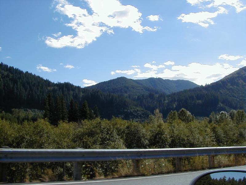 The next picture is typical of the healthy areas of the forest. Keep in mind later on that this is what the mountains immediately surrounding Mount St. Helens looked like prior to the May 18, 1980 eruption. Pine and fur trees (some of them extremely tall) cover most of the terrain. Grasses abound and small bushes and shrubs dot the landscape. There are a fair number of deciduous trees at the lower elevations.