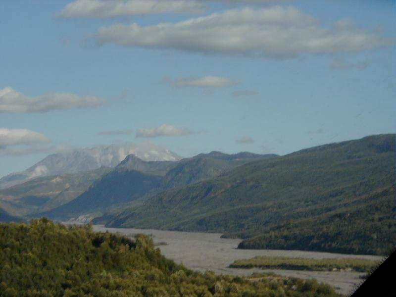 This is the view of Mount St. Helens from the Lahar Viewpoint. You are looking at the southeast corner of the mountain. There was some damage near the northern most portion of the area (right hand side of this photo) due to avalanche and some of the pyroclastic flow coming into this area. However, immediately behind me there were many trees that managed to escape the devastation. Further south of this location, the woods are thick and green.