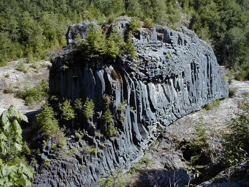This lava deposit really caught my eye. Presumably, many years ago, it was in contact with the water that has now etched its way down into the cliff beside it leaving this structure high and dry. The top granulated rock is similar in appearance to the pyroclastic flows emanating from Mount St. Helens in 1980. The underlying rock is more typical of a traditional lava flow which has a smooth appearance.