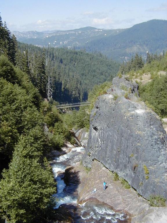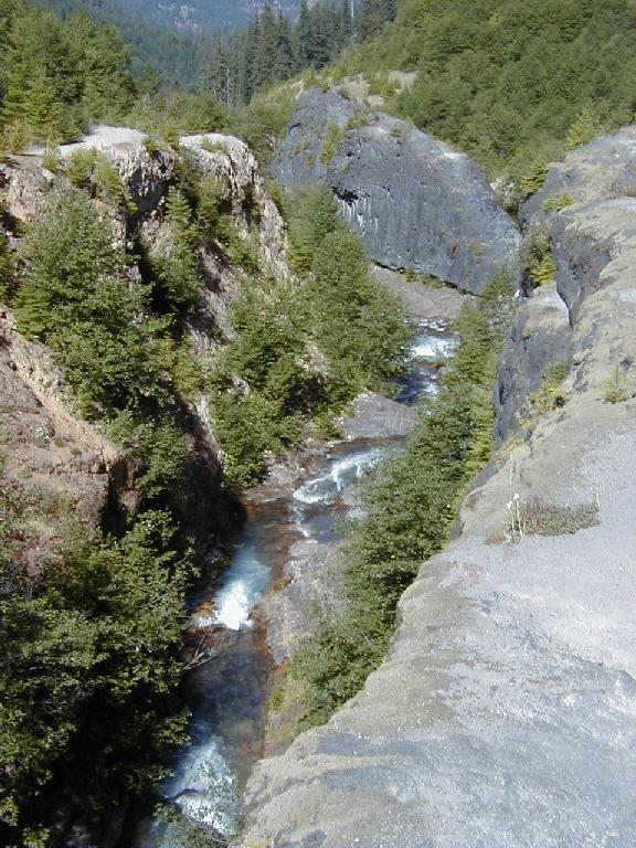 This is the last leg of the Lava Canyon (at least the last leg that is easy to get to). There are all manner of trails in this area. Some are for beginners and some are for experts. I went as far as the suspension bridge which gives you a great view. However, beyond that point, the footing is treacherous and you better have the right type of hiking equipment (something better than tennis shoes). The stream is about 45 feet below me in this picture.