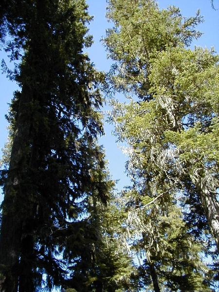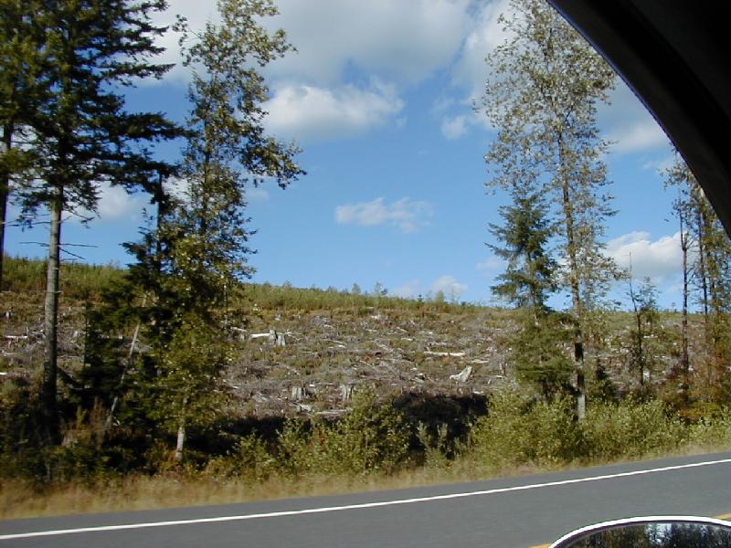 The next picture is typical of the healthy areas of the forest. Keep in mind later on that this is what the mountains immediately surrounding Mount St. Helens looked like prior to the May 18, 1980 eruption. Pine and fur trees (some of them extremely tall) cover most of the terrain. Grasses abound and small bushes and shrubs dot the landscape. There are a fair number of deciduous trees at the lower elevations.