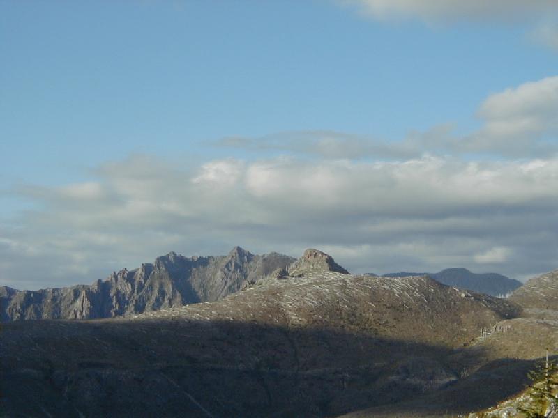 An attempt to capture a picture of the lava dome inside the crater. Look closely in the center and you may be able to see some of the newly formed lava dome (new in that it was created since the eruption in 1980). Unfortunately, the sun was setting which reduced the direct lighting available to this area and visibility was also limited by considerable cloud content that was moving across the mountain. In 1992 the dome was approximately 1,000 feet tall and 3000 feet wide!