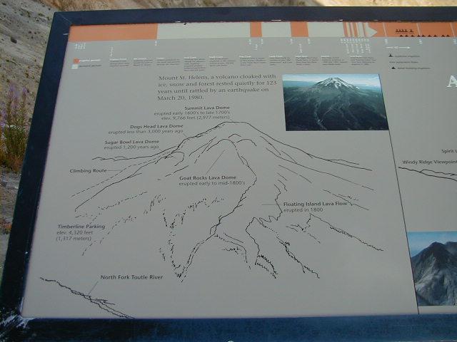 This poster on top of Johnston Ridge shows some of the history of Mount St. Helens - various lava domes have appeared in the past and erupted. There were several that occurred during the 1800s. Note the picture in the upper right corner. That's what Mount St. Helens looked like prior to May 1980.