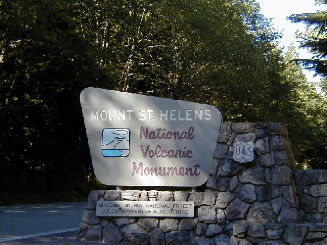 This sign marks the entrance to the national monument. It is beautiful country with rolling hills and lush green forests. Prior to the blast that occurred on May 18, 1980 at Mount St. Helens, all of the mountains within this range were covered with evergreens of various species; some of them were 150 to 200 feet tall. It makes you feel very small indeed to walk through such a forest.